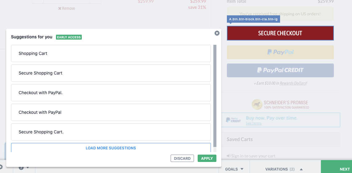 Initially, the banner text read “Up to 40% off Turnout & Stable Blankets – Show Now”. The AI within VWO’s visual editor generated many recommendations. Some of those recommendations made sense, and some didn’t. We eventually arrived at a viable option for an experiment. The copy that was generated by the AI and tested against the control reads: “Shop now and save up to 40% on Turnout & Stable Blankets”.