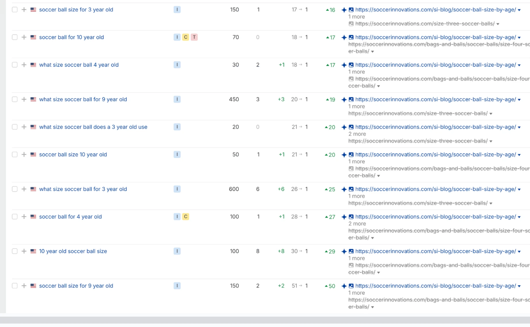 A big concern in SEO currently is the rise of AI Overviews and zero-click searches, however, SEO content that highlights Experience, Expertise, Authority, and Trustworthiness (EEAT) is exactly what search engines and AI are looking for to populate their answers. On top of the new sub-pages and optimized website content, Soccer Innovations published a guide on soccer ball sizes.