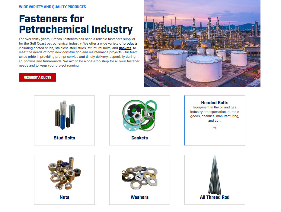 The Brazos Fasteners website was outdated and used SWF files—a now-defunct Adobe Flash format. Additionally, the site had very little content, which caused challenges such as low organic search rankings, weak conversions, and a brand presence that didn’t reflect the company’s efficiency and top-tier customer service.